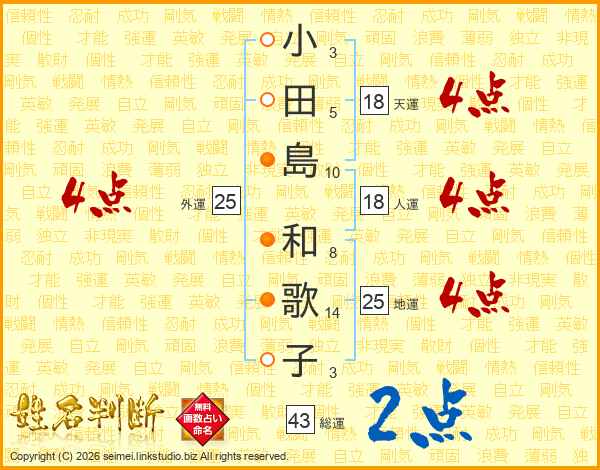 小田島和歌子さんの総運は43画の2点!