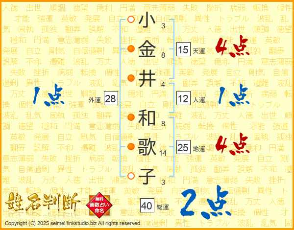 小金井和歌子さんの総運は40画の2点!