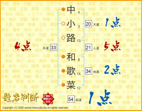 中小路和歌菜さんの総運は54画の1点!