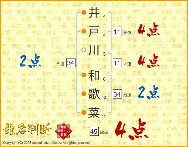 井戸川和歌菜さんの天運は11画の4点!