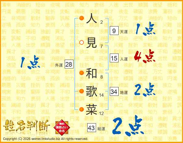 人見和歌菜さんの総運は43画の2点!