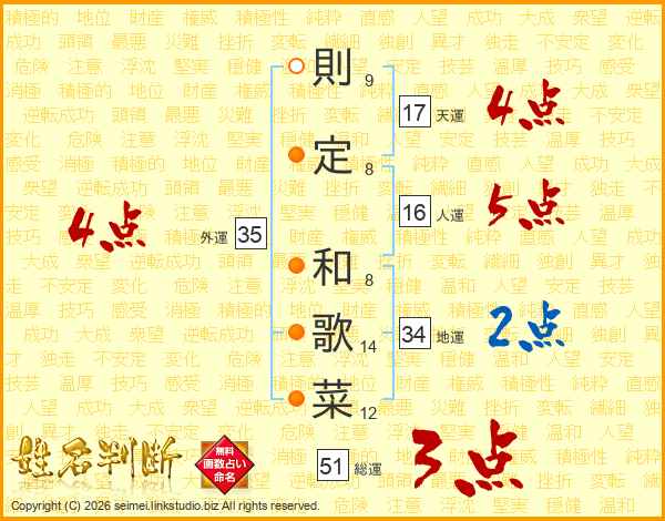 則定和歌菜さんの総運は51画の3点!