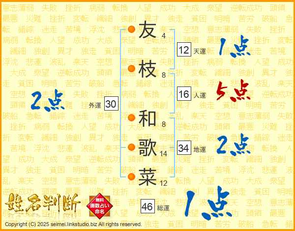 友枝和歌菜さんの総運は46画の1点!