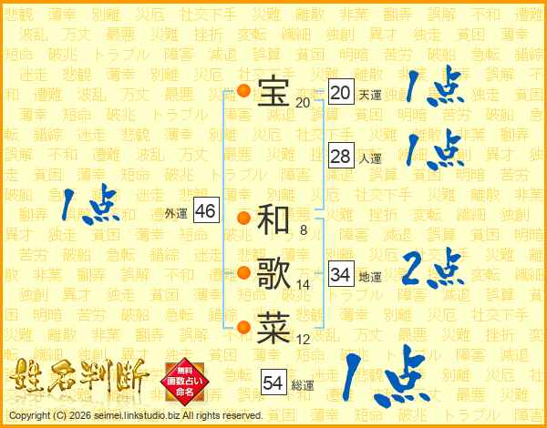 宝和歌菜さんの外運は46画の1点!