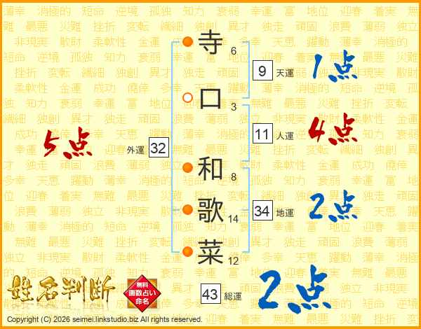 寺口和歌菜さんの総運は43画の2点!