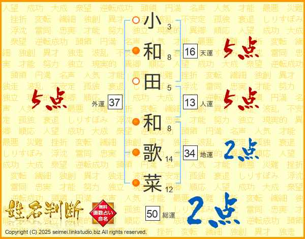 小(3画)和(8画)田(5画) 和(8画)歌(14画)菜(12画)