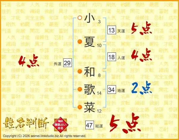 小夏和歌菜さんの総運は47画の5点!