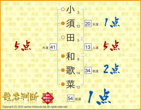 小須田和歌菜さんの人運は13画の5点!