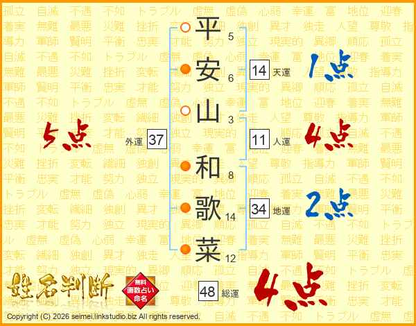 平安山和歌菜さんの総運は48画の4点!