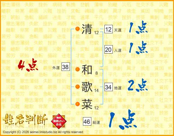 清和歌菜さんの外運は38画の4点!