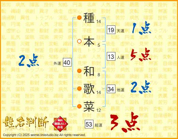 種本和歌菜さんの人運は13画の5点!