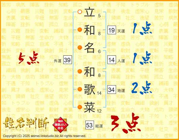 立和名和歌菜さんの天運は19画の1点!