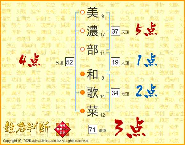 美濃部和歌菜さんの外運は52画の4点!