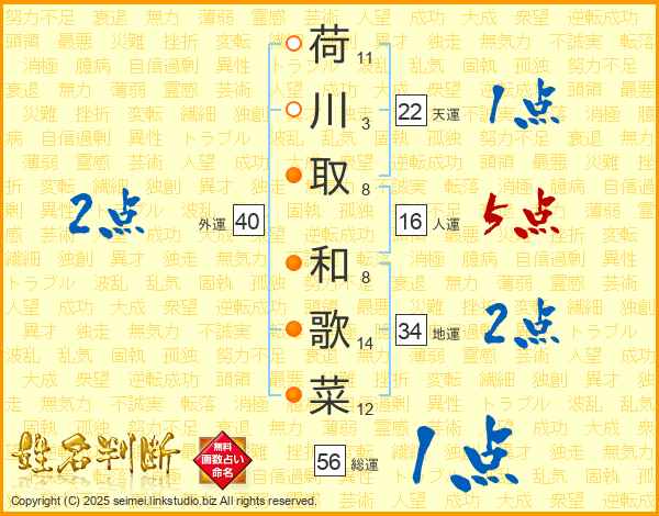 荷川取和歌菜さんの総運は56画の1点!