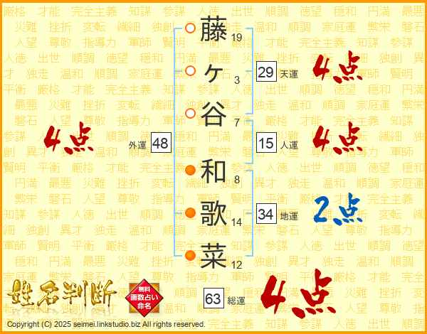藤ヶ谷和歌菜さんの総運は63画の4点!