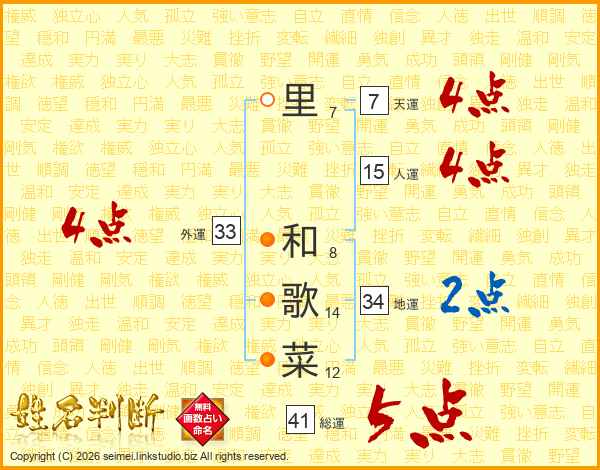 里和歌菜さんの外運は33画の4点!
