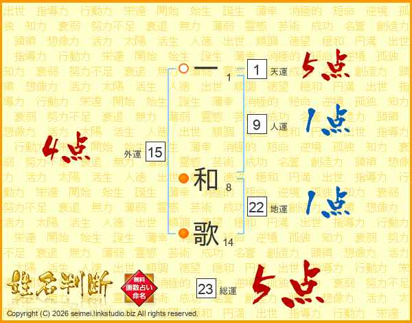 一和歌さんの総運は23画の5点!