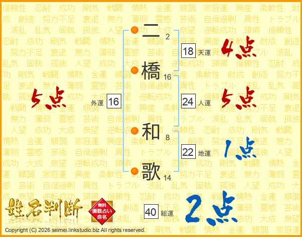 二橋和歌さんの外運は16画の5点!
