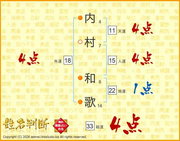 内村和歌さんの総運は33画の4点!