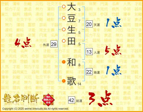 大豆生田和歌さんの総運は42画の3点!