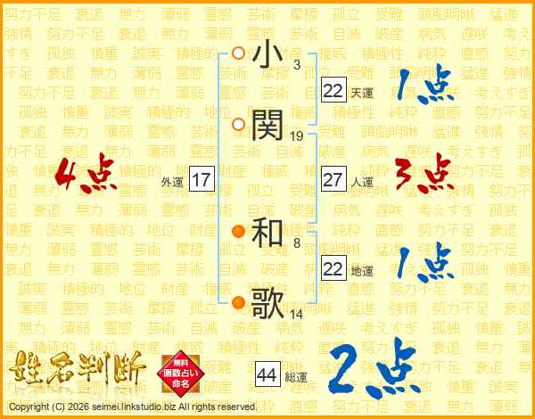 小関和歌さんの総運は44画の2点!