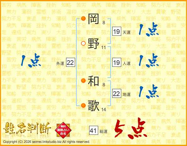 岡野和歌さんの地運は22画の1点!