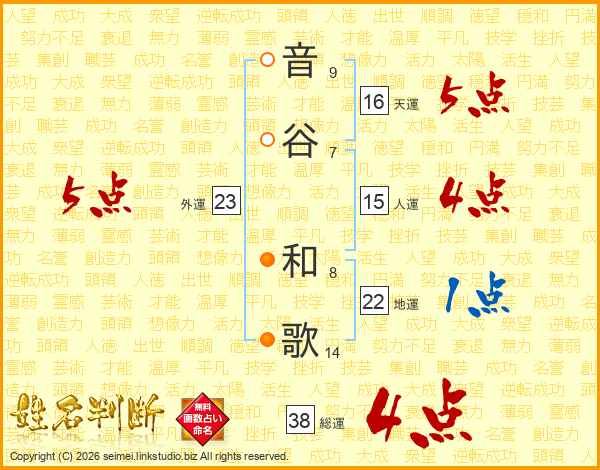 音谷和歌さんの総運は38画の4点!