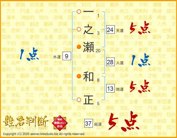 一之瀬和正さんの総運は37画の5点!