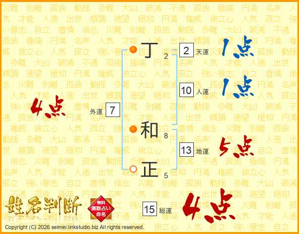 丁和正さんの総運は15画の4点!