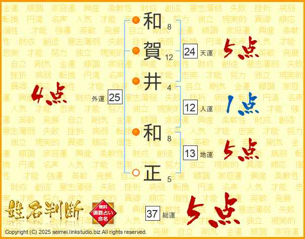 和(8画)賀(12画)井(4画) 和(8画)正(5画)