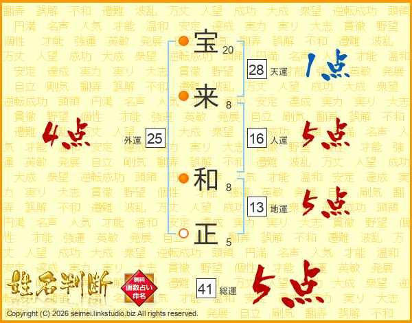 宝来和正さんの総運は41画の5点!