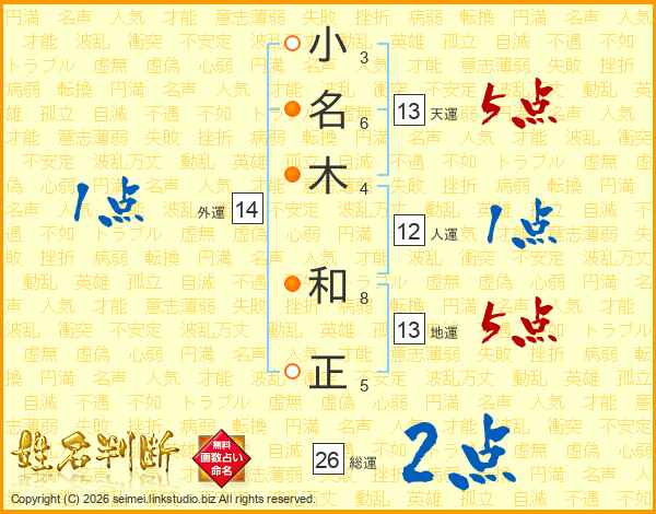 小(3画)名(6画)木(4画) 和(8画)正(5画)