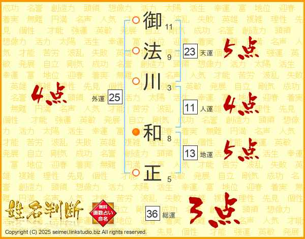 御(11画)法(9画)川(3画) 和(8画)正(5画)