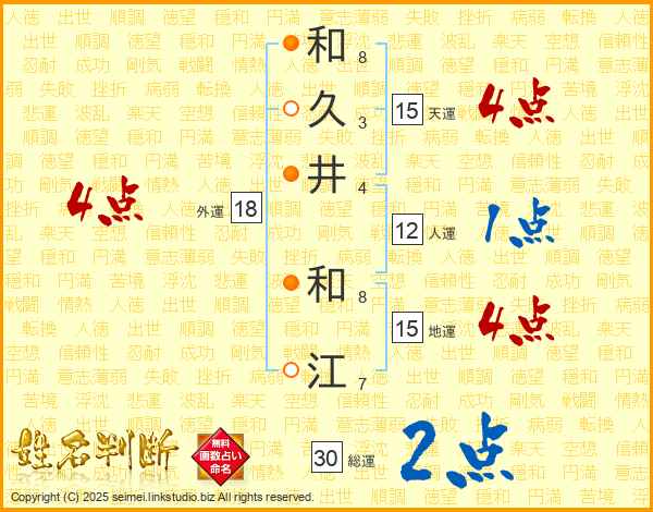 和(8画)久(3画)井(4画) 和(8画)江(7画)