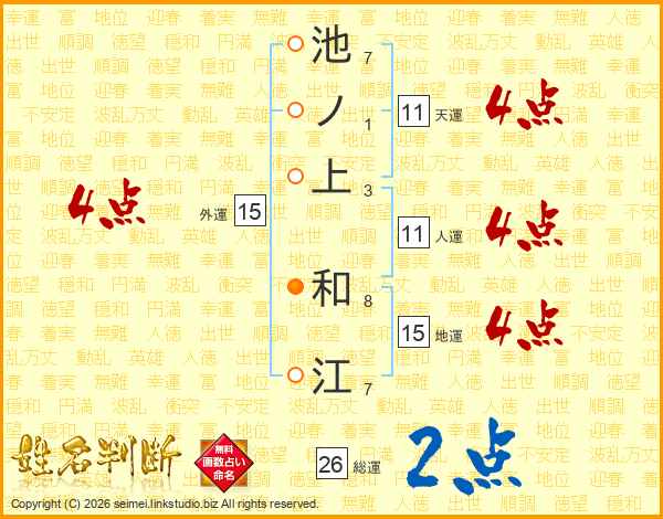 池ノ上和江さんの地運は15画の4点!