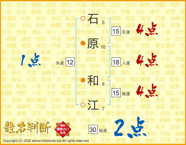 石原和江さんの総運は30画の2点!