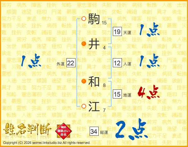 駒(15画)井(4画) 和(8画)江(7画)