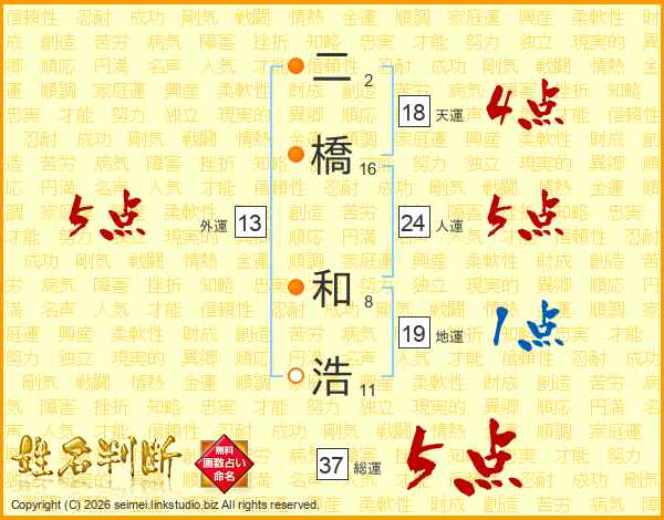 二橋和浩さんの総運は37画の5点!