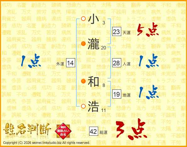 小瀧和浩さんの天運は23画の5点!
