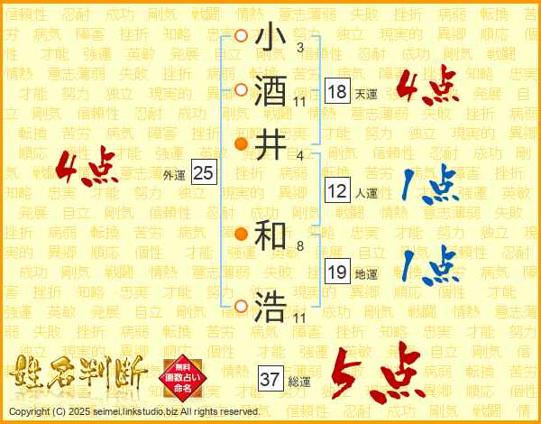 小(3画)酒(11画)井(4画) 和(8画)浩(11画)