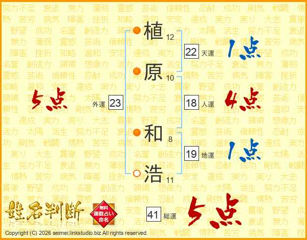植原和浩さんの地運は19画の1点!