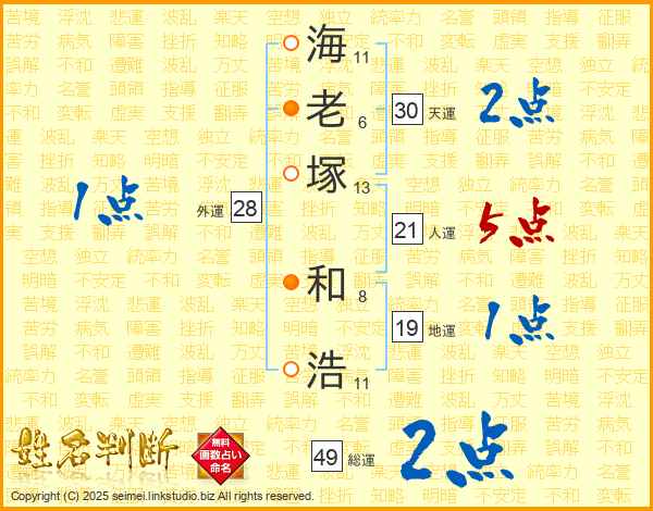 海老塚和浩さんの人運は21画の5点!