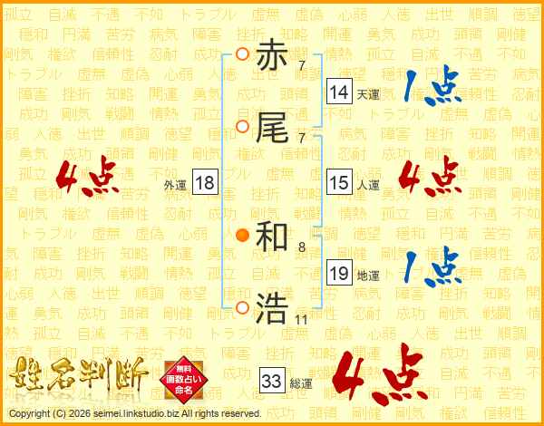 赤尾和浩さんの総運は33画の4点!