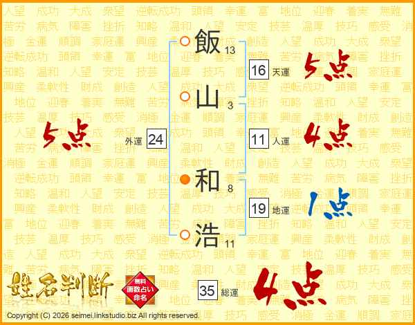 飯山和浩さんの総運は35画の4点!