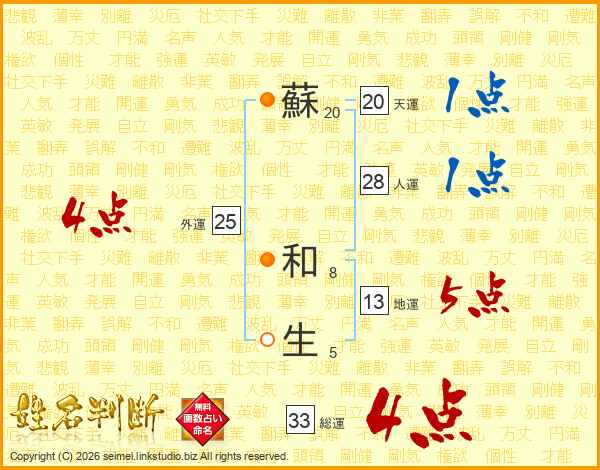 蘇和生さんの総運は33画の4点!