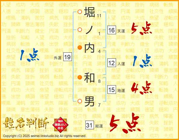 堀ノ内和男さんの総運は31画の5点!