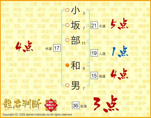 小坂部和男さんの天運は21画の5点!