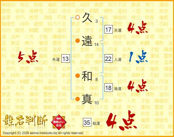 久(3画)遠(14画) 和(8画)真(10画)