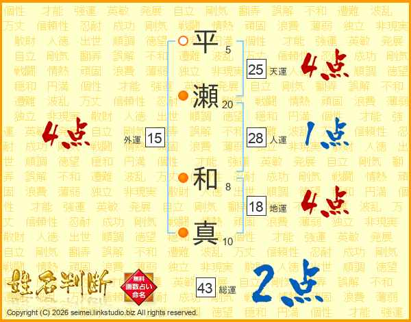 平瀬和真さんの総運は43画の2点!