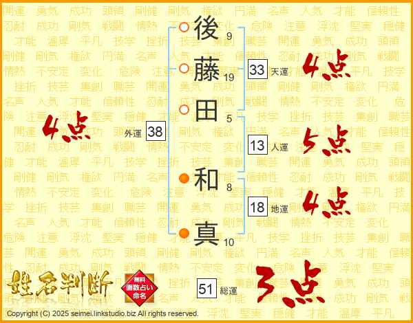 後藤田和真さんの天運は33画の4点!